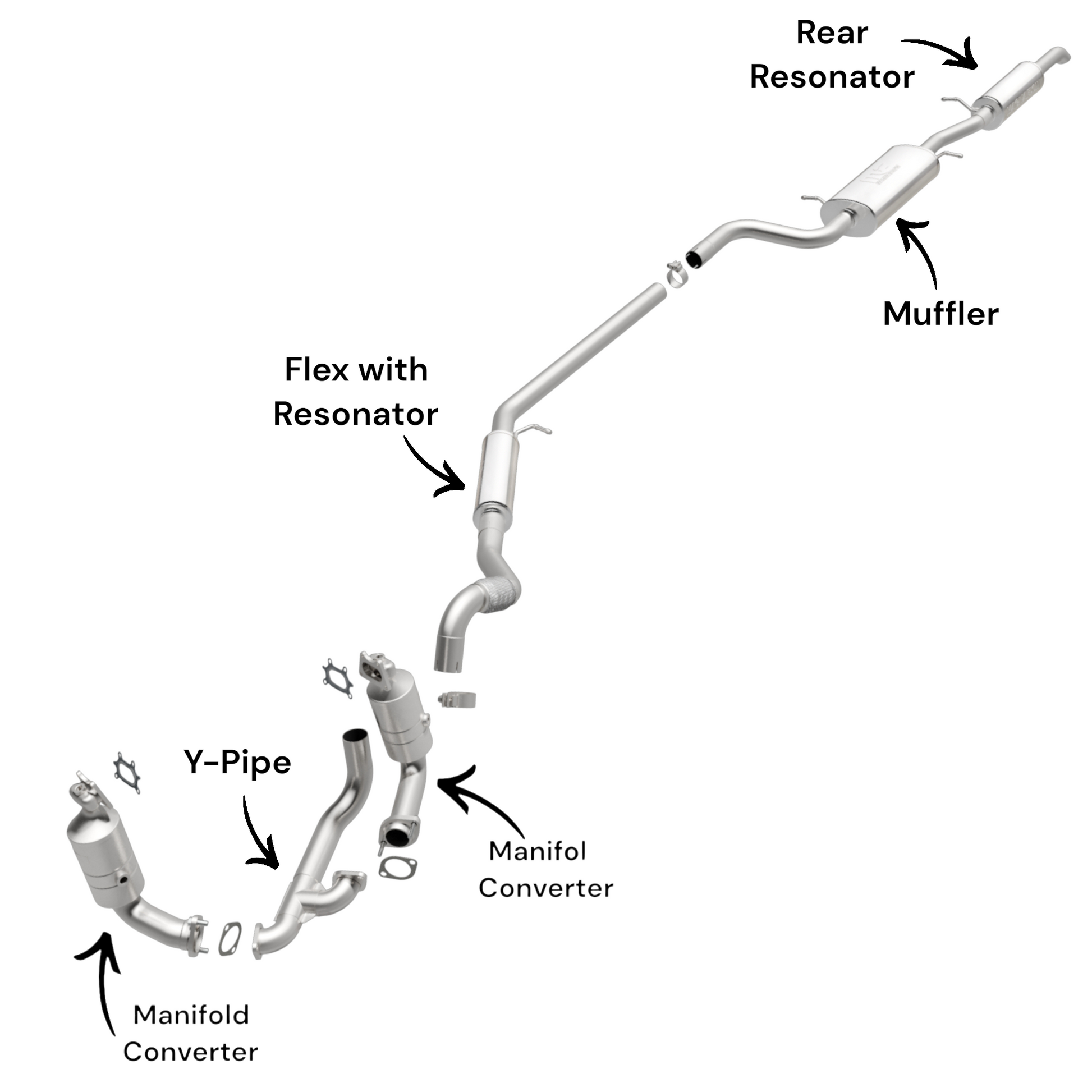 Restore your Routan’s exhaust with this complete direct-fit setup including manifold converters, Y-pipe, flex pipe with resonator, mid pipe, muffler and rear resonator for the 3.6L model.